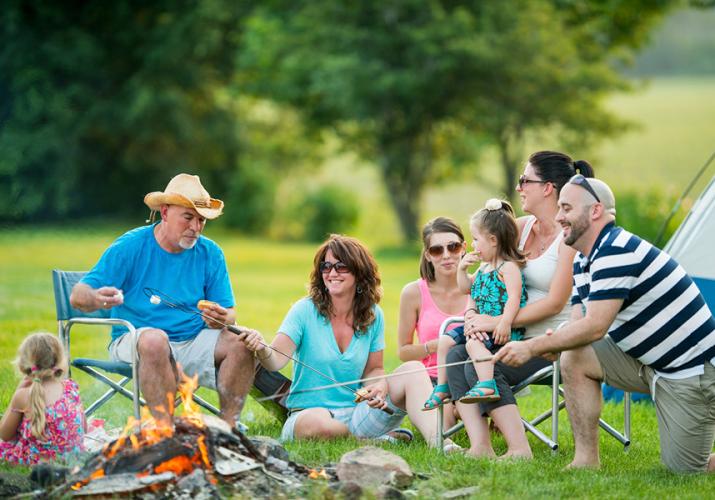 Khoảnh khắc cả gia đình quây quần bên nhau giữa thiên nhiên là hình ảnh đầy năng lượng tích cực.
